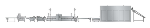 面包虾生产线把虾或者其他海产品经上粉,上稠浆,上鲜康,油炸,速冻等工艺做出裹粉的炸鸡腿。面包虾生产线的需要配置前处理设备和后处理设备:油炸,包装等设备,