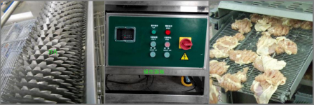 鸡肉嫩花机可以与压延机组合使用,生产牛排或者鸡排等其他肉类产品。使用范围 :厚度在0~20mm之间的无骨肉块。